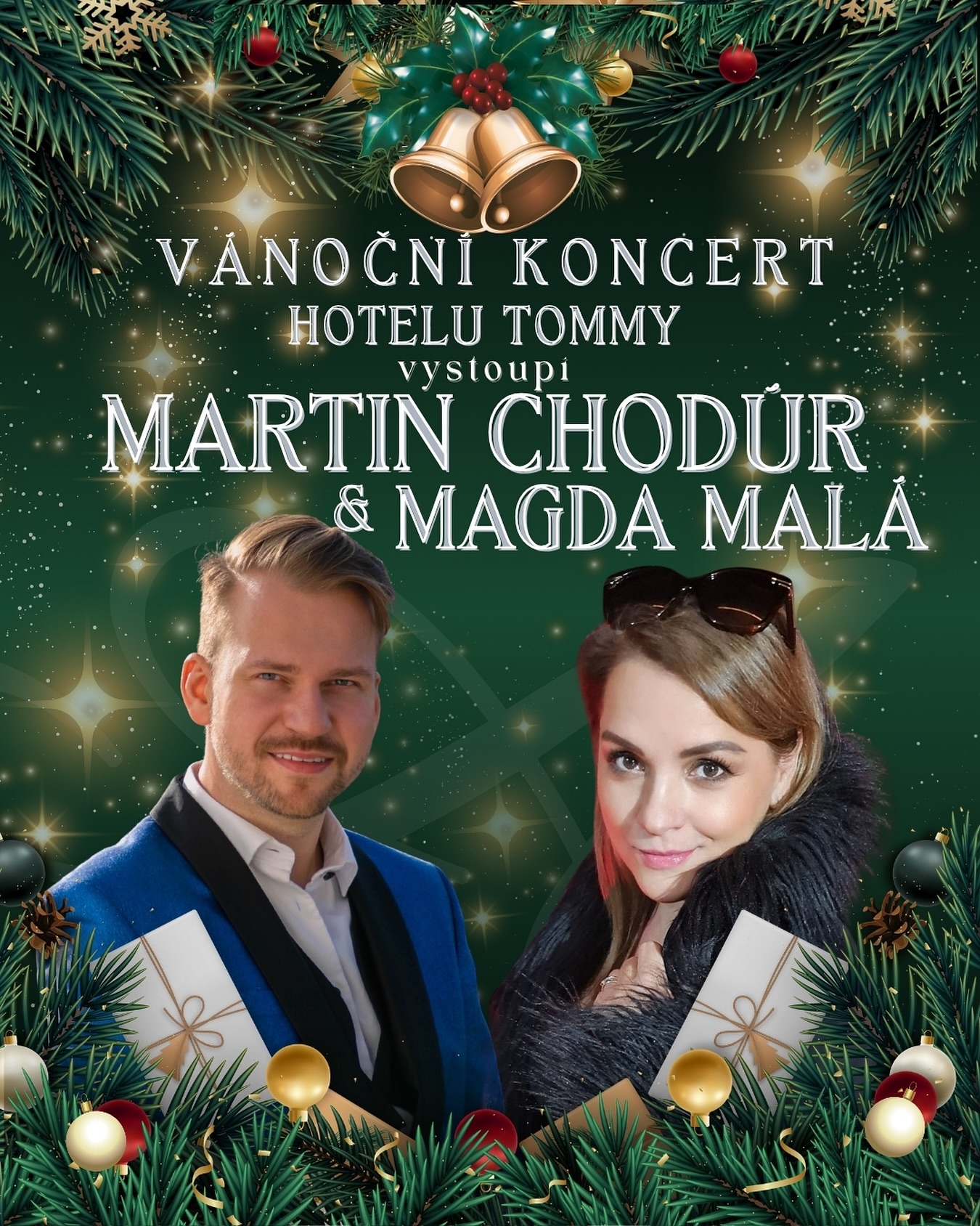 Hotel TOMMY vás srdečně zve ve středu 17. prosince 2025 od 19:00 na vánoční koncert Martina Chodúra a Magdy Malé.