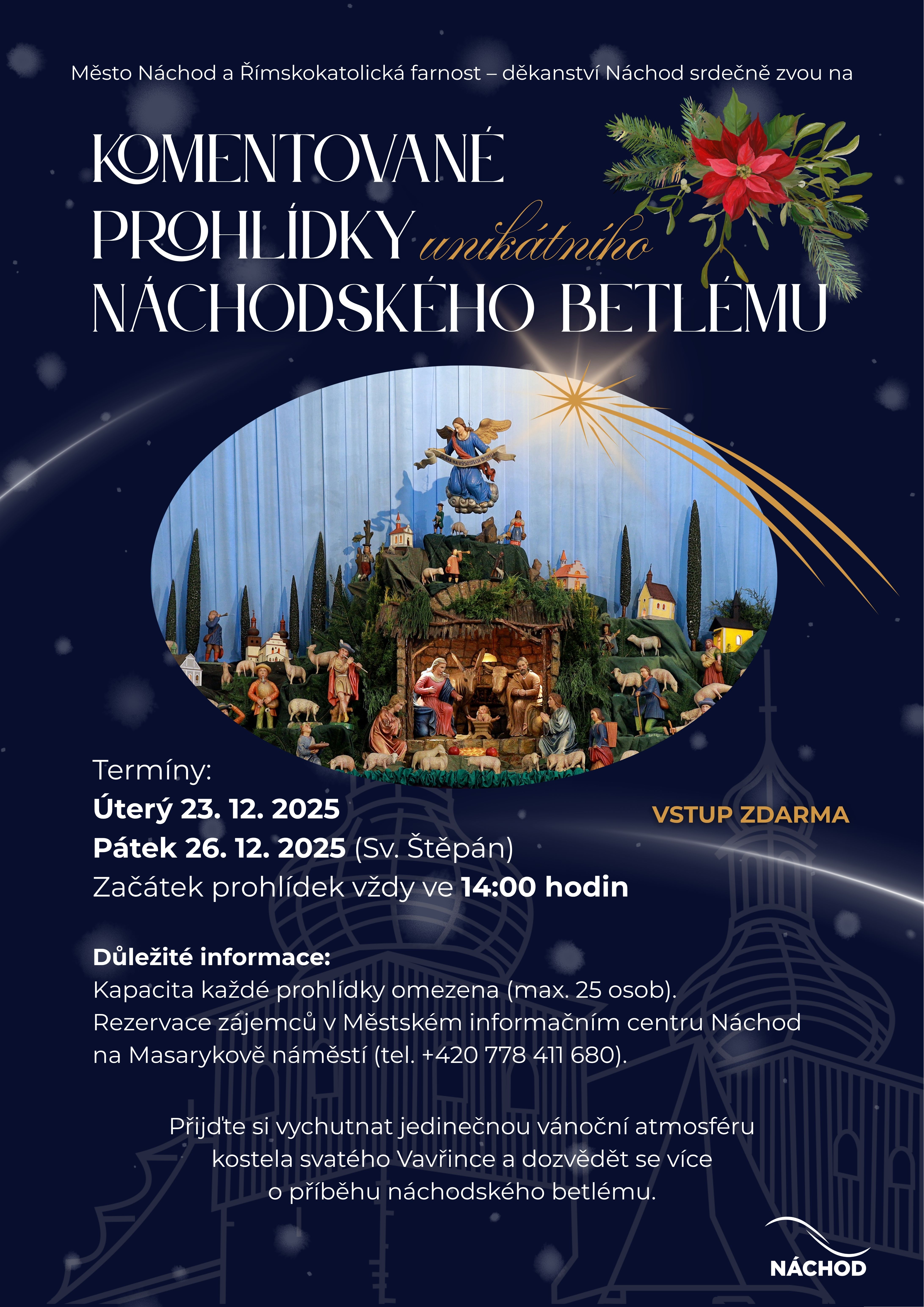 Město Náchod a Římskokatolická farnost - děkanství Náchod srdečně zvou na komentované prohlídky unikátního náchodského betlému.