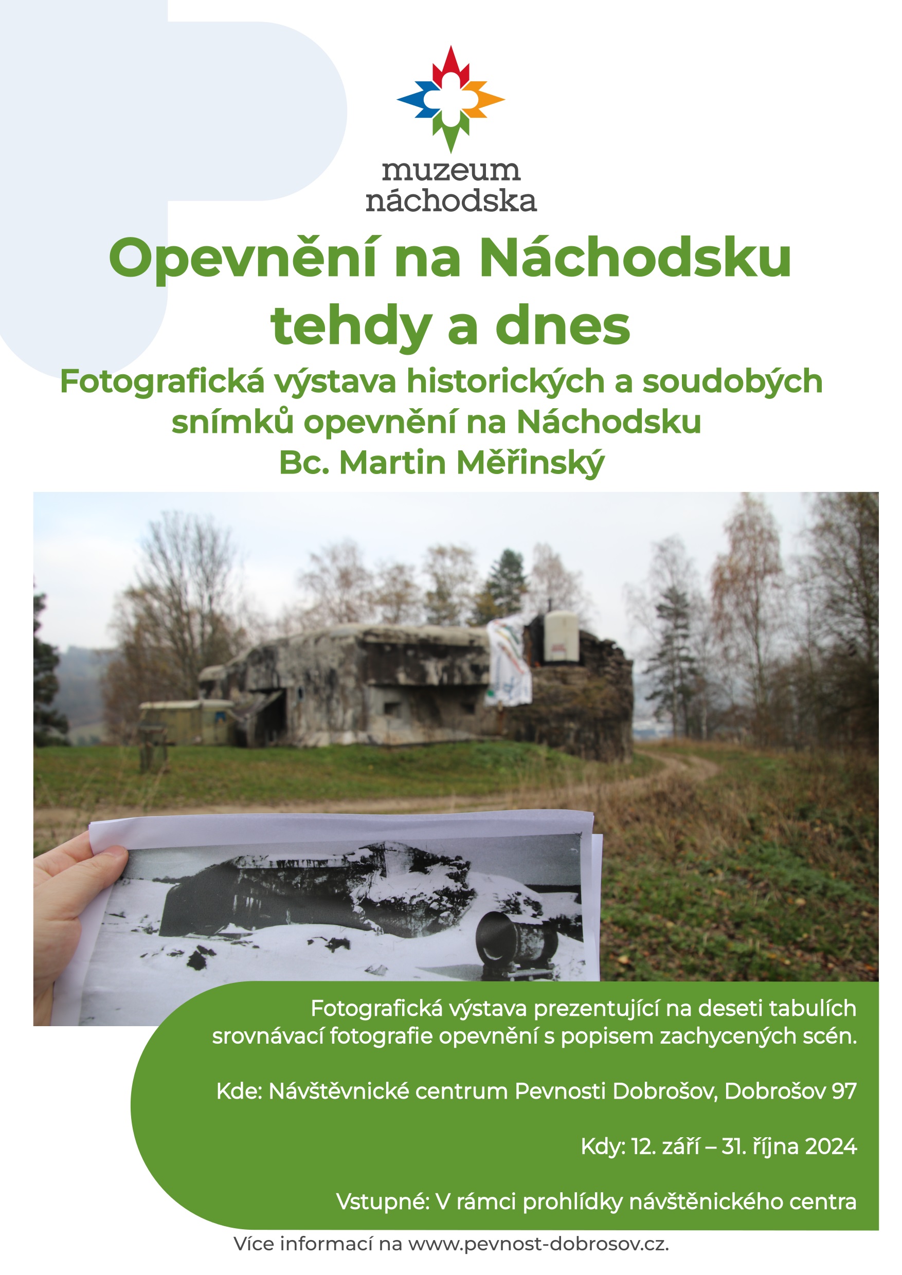 Muzeum Náchodska vás zve na fotografickou výstavu historických a soudobých snímků opevenění na Náchodsku, která bude probíhat od 12. září do 31. října 2024 v návštěvnickém centru Pevnosti Dobrošov.
