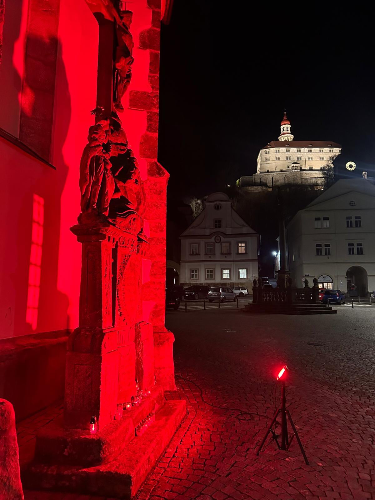Také město Náchod se připojí k této mezinárodní iniciativě Červená středa - Společně za víru a svobodu a 26. listopadu 2025 se v 17:30 hodin zahalí do symbolické červené barvy sousoší Kalvárie za kněžištěm kostela sv. Vavřince na Masarykově náměstí.