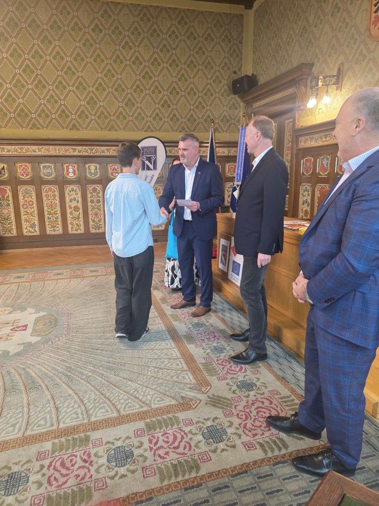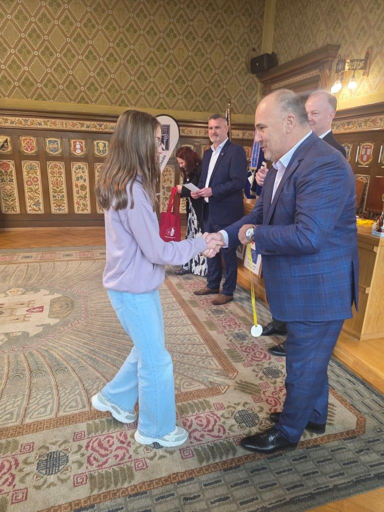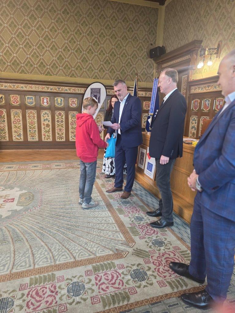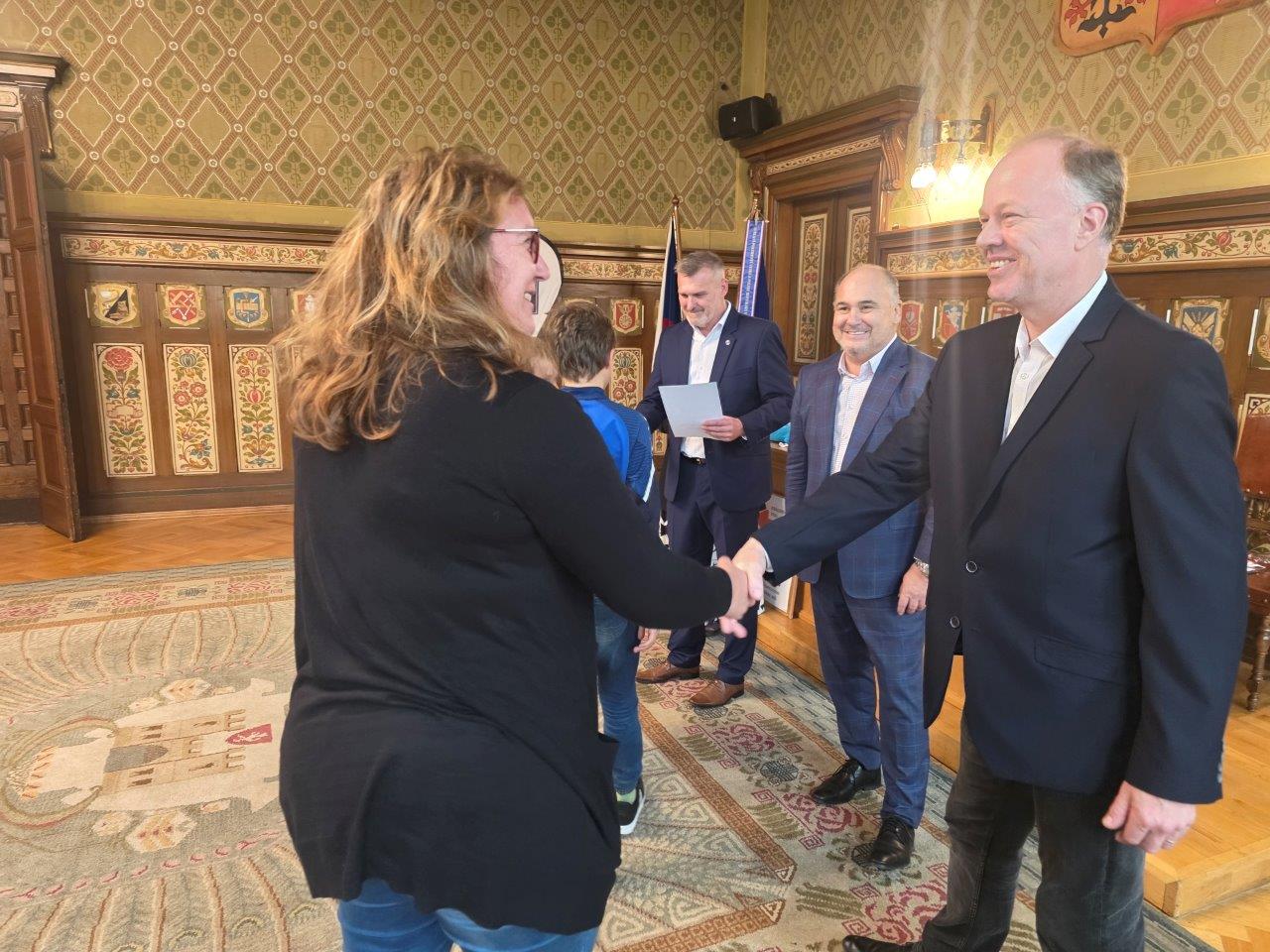 Dnes na náchodské radnici proběhlo slavnostní vyhlášení výsledků a předání pohárů vítězům tradiční sportovní soutěže Běh o putovní pohár starosty města Náchoda - Běh do zámeckých schodů.