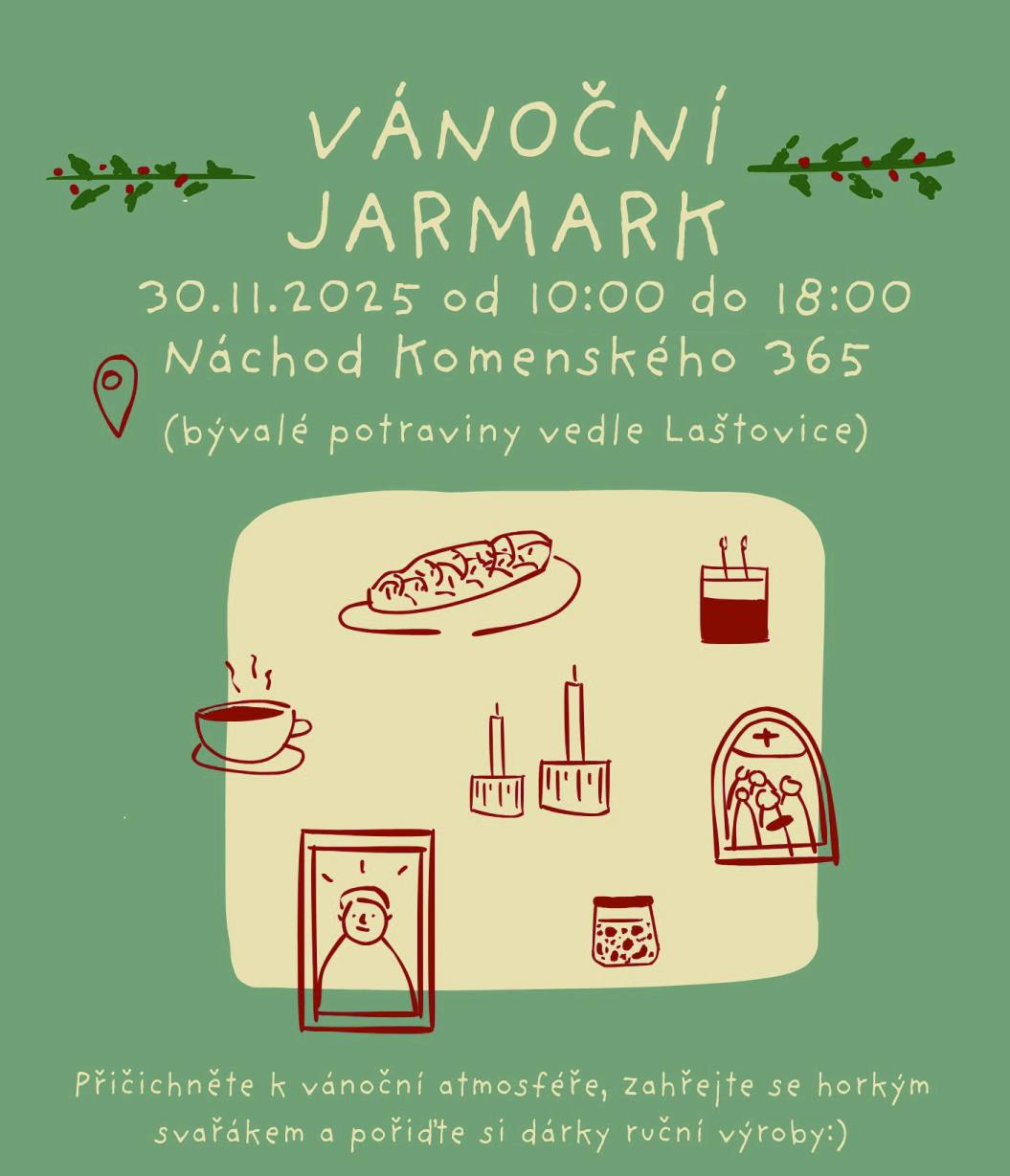 Zveme Vás na vánoční minijarmark, který se uskuteční 30. listopadu od 10:00 v prostorách bývalých potravin v ulici Komenského.